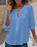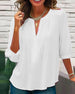 SPECIFICATIES Toptype: Bloes Stijl: Gewoontjes, Bedrijf Materiaal: 100% Polyester Gelegenheid: Dagelijks, Werk Hals lijn: V-hals_V Patroon type: Effen kleur Mouw type: Normale mouw Mouw lengte: 3/4 mouw Pasvorm: Normaal Seizoen: Lente, Zomer Details: gerimpeld Pakket bestaat uit: 1 x bloes MAATTABEL (cm) Maat Borst Lengte Mouwen...