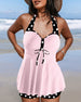 SPECIFICATIES Stijl: Vakantie Materiaal: 15% Spandex,85% Polyester Gelegenheid: Vakantie Hals lijn: Halster Patroon type: Stip,Kleurblok Mouw lengte: Mouwloos Top type: Tankini BH-type: Draadloze BH Bodem type: Korte broek Pasvorm: mager Seizoen: Zomer Details: Lapwerk,stropdas kant Pakket bestaat uit: 1 x tankini MAATTABEL (cm) Maat Borst M...
