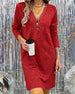 SPECIFICATIES Stijl: Gewoontjes Materiaal: katoenblends Type jurk: Verschuivings jurk Jurk lengte: knie lengte Hals lijn: V-hals_V Patroon type: Effen kleur Mouw type: Normale mouw Mouw lengte: Lange mouw Details: Rits Pasvorm: Normaal Seizoen: Val,Winter Gelegenheid: Dagelijks Pakket bestaat uit: 1 x Jurk MAATTABEL (cm) Maat Borst Leng...