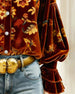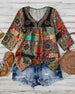 Gedrukte Casual Top Met V-Hals En Lange Mouwen