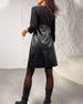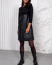 SPECIFICATIES Stijl: Elegant Materiaal: katoenblends, PU-leer Type jurk: A-lijn Jurk lengte: knie lengte Hals lijn: Ronde nek Patroon type: Effen kleur Mouw type: Normale mouw Mouw lengte: 3/4 mouw Details: Lapwerk Pasvorm: Normaal Seizoen: Lente, Val, Winter Gelegenheid: Dagelijks Pakket bestaat uit: 1 x Jurk MAATTABEL (cm) Maat Buste Le...