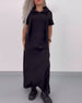 SPECIFICATIES Stijl: Gewoontjes Materiaal: katoenblends Type jurk: Verschuivings jurk Jurk lengte: Maxi Hals lijn: Ronde nek Patroon type: Effen kleur Mouw type: Normale mouw Mouw lengte: Halve mouw Details: Spleet Pasvorm: Normaal Seizoen: Lente,Zomer Gelegenheid: Dagelijks Pakket bestaat uit: 1 x Jurk MAATTABEL (cm) Maat Borst Lengte ...