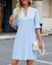 SPECIFICATIES Stijl: Gewoontjes Materiaal: katoenblends Type jurk: Verschuivings jurk Jurk lengte: Boven de knie Hals lijn: V-hals_V Patroon type: Effen kleur Mouw type: Ruche Mouw Mouw lengte: Halve mouw Details: Ruche Pasvorm: Normaal Seizoen: Lente,Zomer Gelegenheid: Dagelijks Pakket bestaat uit: 1 x Jurk MAATTABEL (cm) Maat Borst Le...