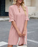 SPECIFICATIES Stijl: Gewoontjes Materiaal: katoenblends Type jurk: Verschuivings jurk Jurk lengte: Boven de knie Hals lijn: U-hals_U Patroon type: Effen kleur Mouw type: Mouwen met split Mouw lengte: 3/4 mouw Details: Uithollen Pasvorm: Normaal Seizoen: Lente,Zomer Gelegenheid: Dagelijks Pakket bestaat uit: 1 x Jurk MAATTABEL (cm) Maat Borst...