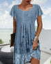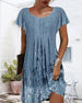 Jurk Geploide Korte Mouw Katoen En Linnen