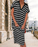 SPECIFICATIES Stijl: Gewoontjes Materiaal: Katoen,Polyester Type jurk: Verschuivings jurk Jurk lengte: Midi Hals lijn: Revers Patroon type: Gestreept Mouw type: Normale mouw Mouw lengte: Korte mouw Details: Spleet Pasvorm: Normaal Seizoen: Lente,Zomer Gelegenheid: Dagelijks Pakket bestaat uit: 1 x Jurk MAATTABEL (cm) Maat Schouder Bors...