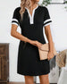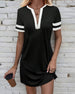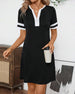 Jurk Half-Rits Colorblock Slim-Fit Kort Mouw