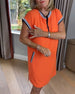 SPECIFICATIES Stijl: Gewoontjes Materiaal: katoenblends Type jurk: Verschuivings jurk Jurk lengte: Boven de knie Hals lijn: V-hals_V Patroon type: Kleurblok Mouw type: Normale mouw Mouw lengte: Korte mouw Details: Rits Pasvorm: Normaal Seizoen: Lente,Zomer Gelegenheid: Dagelijks Pakket bestaat uit: 1 x Jurk MAATTABEL (cm) Maat Borst Leng...