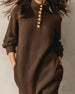 SPECIFICATIES Stijl: Gewoontjes Materiaal: katoenblends Type jurk: Verschuivings jurk Jurk lengte: Maxi Hals lijn: Ronde nek Patroon type: Effen kleur Mouw lengte: Lange mouw Details: Zak Pasvorm: Loszittend Seizoen: Val,Winter Gelegenheid: Dagelijks Pakket bestaat uit: 1 x Jurk MAATTABEL (cm) Maat Borst Lengte S 95 125 M 100 126 L 105...