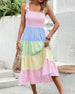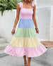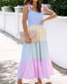 SPECIFICATIES Stijl: Gewoontjes, Vakantie Materiaal: katoenblends Type jurk: A-lijn Jurk lengte: Midi Hals lijn: Spaghettibandjes Patroon type: Kleurblok Mouw lengte: Mouwloos Pasvorm: Normaal Seizoen: Lente, Zomer Gelegenheid: Dagelijks, Vakantie Pakket bestaat uit: 1 x Jurk MAATTABEL (cm) Maat Borst Lengte S 95 128 M 100 129 L 105 13...