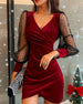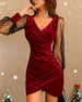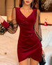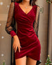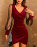 SPECIFICATIES Stijl: Gewoontjes Materiaal: gaas,Fluweel Type jurk: Bodycon Jurk lengte: knie lengte Hals lijn: V-hals_V Patroon type: Effen kleur Mouw type: Normale mouw Mouw lengte: Lange mouw Details: Lapwerk Pasvorm: Normaal Seizoen: Val,Winter Gelegenheid: Dagelijks Pakket bestaat uit: 1 x Jurk MAATTABEL (cm) Maat Borst Lengte S 97 100...