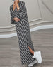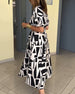 SPECIFICATIES Stijl: Gewoontjes, Vakantie Materiaal: katoenblends Type jurk: Verschuivings jurk Jurk lengte: Maxi Hals lijn: V-hals_V Patroon type: Geometrische print Mouw type: Normale mouw Mouw lengte: Lange mouw Details: Lapwerk, Spleet Pasvorm: Normaal Seizoen: Lente, Zomer, Val Gelegenheid: Dagelijks, Vakantie Pakket bestaat uit: 1 x Jur...