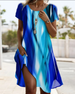 Jurk Puffmouwen Tie-Dye Ronde Hals