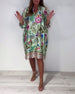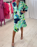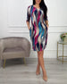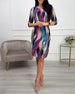 Jurk Staande Kraag Driekwartmouwen Digitale Print