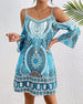 SPECIFICATIES Stijl: Gewoontjes Materiaal: katoenblends Type jurk: Verschuivings jurk Jurk lengte: Boven de knie Hals lijn: Koude schouder Patroon type: Afdrukken Mouw type: Flare mouw Mouw lengte: 3/4 mouw Pasvorm: Normaal Seizoen: Lente,Zomer Gelegenheid: Dagelijks Pakket bestaat uit: 1 x Jurk MAATTABEL (cm) Maat Borst Lengte S 95 95 M...