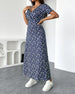 SPECIFICATIES Stijl: Elegant Materiaal: katoenblends Type jurk: A-lijn Jurk lengte: Maxi Hals lijn: V-hals_V Patroon type: Afdrukken Mouw type: Normale mouw Mouw lengte: Korte mouw Pasvorm: Normaal Seizoen: Lente,Zomer Gelegenheid: Dagelijks Pakket bestaat uit: 1 x Jurk MAATTABEL (cm) Maat Borst Lengte Mouwen Schouder S 85 132 22 38 ...