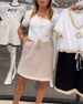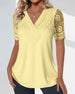 SPECIFICATIES Toptype: Topjes Stijl: Elegant Materiaal: katoenblends, Veter Gelegenheid: Dagelijks Hals lijn: V-hals_V Patroon type: Effen kleur Mouw type: Normale mouw Mouw lengte: Korte mouw Pasvorm: Normaal Seizoen: Lente, Zomer, Val Details: Lapwerk Pakket bestaat uit: 1 x Top MAATTABEL (cm) Maat Borst Lengte S 95 ...