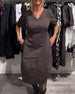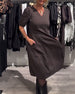 SPECIFICATIES Stijl: Gewoontjes Materiaal: katoenblends Type jurk: A-lijn Jurk lengte: knie lengte Hals lijn: V-hals_V Patroon type: Effen kleur Mouw type: Normale mouw Mouw lengte: Korte mouw Details: Zak Pasvorm: Normaal Seizoen: Val,Winter Gelegenheid: Dagelijks Pakket bestaat uit: 1 x Jurk MAATTABEL (cm) Maat Borst Lengte S 95 105 M ...