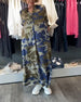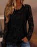Kanten blouse met wijde pijpen, broek met zak, effen kleur en knopen