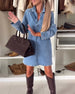 Jurk Van Denim Met Patchworkdetails En Ruitjespatroon