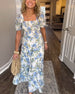 SPECIFICATIES Stijl: Gewoontjes Materiaal: katoenblends Type jurk: A-lijn Jurk lengte: Maxi Hals lijn: Vierkante hals Patroon type: Bloemen,Afdrukken Mouw type: Pofmouw Mouw lengte: Korte mouw Details: gerimpeld Pasvorm: Normaal Seizoen: Lente,Zomer Gelegenheid: Dagelijks Pakket bestaat uit: 1 x Jurk MAATTABEL (cm) Maat Borst Lengte S 95 1...