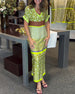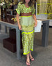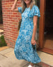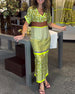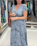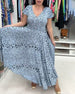 Lange jurk met contrasterende print en korte mouwen met V-hals