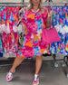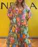 Kleurrijke casual jurk met bloemenprint en klokmouwen