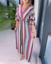SPECIFICATIES Stijl: Elegant Materiaal: katoenblends Type jurk: A-lijn Jurk lengte: Maxi Hals lijn: V-hals_V Patroon type: Afdrukken Mouw type: Normale mouw Mouw lengte: 3/4 mouw Pasvorm: Normaal Seizoen: Lente,Zomer Gelegenheid: Dagelijks Pakket bestaat uit: 1 x Jurk MAATTABEL (cm) Maat Borst Lengte S 95 128 M 100 129 L 105 130 XL 1...