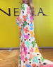 Kleurrijke geplooide elegante jurk met bloemenprint