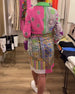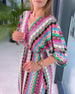 Kleurrijke patchwork bedrukte jurk met V-hals en driekwart mouwen