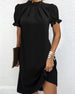 SPECIFICATIES Stijl: Gewoontjes Materiaal: katoenblends Type jurk: Verschuivings jurk Jurk lengte: Boven de knie Hals lijn: Ronde nek Patroon type: Effen kleur Mouw type: Normale mouw Mouw lengte: Korte mouw Details: Lapwerk,Heet boren Pasvorm: Normaal Seizoen: Val,Winter Gelegenheid: Dagelijks Pakket bestaat uit: 1 x Jurk MAATTABEL (cm) Maa...