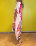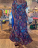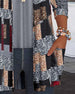 Lange jurk met opstaande kraag en lange mouwen met patchworkprint