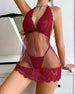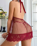 Bloemen Kant Halter Babydoll Lingerie Jurk Met String