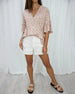 SPECIFICATIES Toptype: Bloes Stijl: Gewoontjes Materiaal: katoenblends Gelegenheid: Dagelijks Hals lijn: V-hals_V Patroon type: Bloemen Mouw type: Flare mouw Mouw lengte: Halve mouw Pasvorm: Normaal Seizoen: Lente Details: Toetsen,gerimpeld Pakket bestaat uit: 1 x bloes MAATTABEL (cm) Maat Borst Lengte S 95 68 M 100 69.5 L 105 71 XL ...