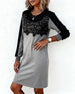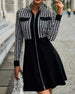Langmouwige Jurk Met Patchwork En Hondenbitpatroon