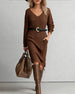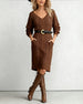 Langmouwige Jurk Met V-Hals En Kabelssteek