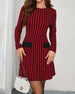 Langmouwige Jurk Met Hoge Hals En Patchwork