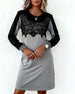 Langmouwige Jurk In Hondenbontstof Met Kant