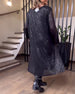 Modieuze effenkleurige pailletten patchwork jurk met lange mouwen