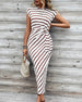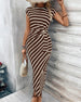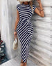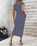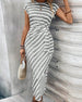 SPECIFICATIES Stijl: Chique Materiaal: katoenblends Type jurk: A-lijn Jurk lengte: Midi Hals lijn: Ronde nek Patroon type: Gestreept Mouw type: Raglan mouw Mouw lengte: Korte mouw Details: Verband,gerimpeld Pasvorm: Normaal Seizoen: Zomer Gelegenheid: Dagelijks Pakket bestaat uit: 1 x Jurk MAATTABEL (cm) Maat Borst Middel Lengte S 94 77 12...