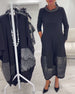Modieuze effen broek met zakken en onregelmatige patchwork