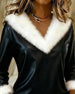Modieuze Geprinte Top Met Bontkraag