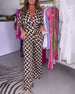 Modieuze jumpsuit met diepe V-hals en lange mouwen met print