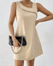 Modieuze mouwloze jurk met schuine halslijn en effen kleur