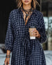 Modieuze Jurk Met Ruitpatroon En Geknoopte Kraag
