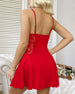 SPECIFICATIES Stijl: Sexy Materiaal: katoenblends Type jurk: Cami Jurk lengte: Boven de knie Hals lijn: Spaghettibandjes Patroon type: Effen kleur Mouw lengte: Mouwloos Details: Doorzichtig,Kruisbanden,Veter Pasvorm: Normaal Gelegenheid: Dagelijks Pakket bestaat uit: 1 x Slaapjurk MAATTABEL (cm) Maat Borst Middel Huep S 78 76 88 M 82...