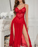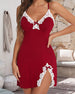 Nachthemd Diepe V Strik Split Draagband