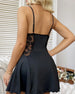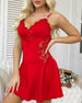 SPECIFICATIES Stijl: Sexy Materiaal: gaas Type jurk: Cami Jurk lengte: Boven de knie Hals lijn: V-hals_V Patroon type: Effen kleur Mouw type: Normale mouw Mouw lengte: Mouwloos Details: Rugloos,Veterschoenen Seizoen: Lente,Zomer Gelegenheid: Dagelijks Pakket bestaat uit: 1 x Slaapjurk MAATTABEL (cm) Maat Middel Lengte S 70 72 M 74 7...