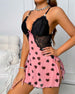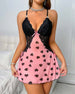 Nachtjapon Contrastkleur Rugloos Hoge Split Sexy Hartprint