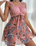 SPECIFICATIES Stijl: Vakantie Materiaal: 15% Spandex,85% Polyester Gelegenheid: Vakantie Patroon type: Afdrukken Mouw lengte: Mouwloos Top type: Zwemjurk BH-type: Draadloze BH Bodem type: Rokken Pasvorm: mager Details: Rugloos,Veterschoenen,Trekkoord Pakket bestaat uit: 1 x Zwemjurk MAATTABEL (cm) Maat Borst Middel Huep Lagere buste S 88 7...